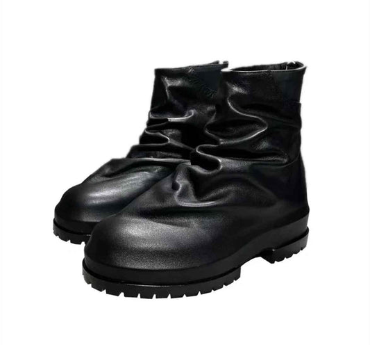 424 on Fairfax Ankle Boots - SS22 Crinkled Zip High-Top Retro Thick-Soled Lambskin