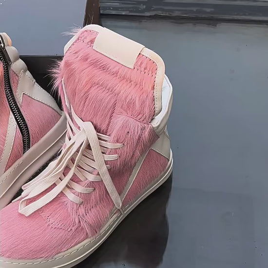 24SS Pony Hair RO High-Top Sneakers – Leather Thick Sole Casual Shoes Unisex